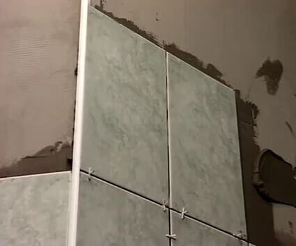 При помощи отвеса или уровня следует осмотреть поверхность стен на предмет их вертикальности, если уровень слоя под плиткой предполагается более 0,8 сантиметров, то данную поверхность следует оштукатурить. Перед тем как заняться укладкой плитки на стену, поверхность следует покрыть штукатурной сеткой. Поверхность стены должна равномерно и полностью быть покрыта сеткой, которая будет плотно прилегать к стене.