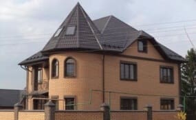 Сложная кровля занимает в пересчёте большую площадь, чем обычная. А значит вес её тоже больше. И материалы, поддерживающие и направляющие в правильном направлении крышу, должны быть очень прочными и надёжными, чтобы выдерживать вес такой конструкции. Поэтому к выбору кровельного материала нужно подойти с особой серьёзностью. Гибкая черепица, является очень лёгкой, но как говорилось выше не очень подходит для сложной кровли. Цементно-песчаная черепица так же не лучший вариант. Хорошее впечатление и результат создаёт кровля из металлочерепицы. Это будет облегчённый вариант, который создаст все необходимые и декоративные и технологические функции. Лёгкая черепица может выдержать непогоду в лучшей степени. Ведь при лёгкой черепице и нашествии непогоды стропила могут выдержать намного больше.