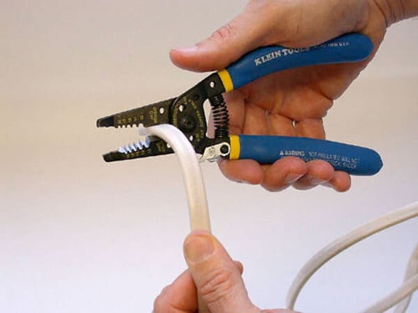 Пластмассовую изоляцию можно снять с помощью ножа и плоскогубцев. Для этого нужно взять провод и аккуратно его согнуть. В месте перегиба нужно ножом надавить на изоляцию. Она должна легко разойтись. После этого в работу вступают плоскогубцы, которые легко стянут изоляцию с провода. Изоляцию на лаковой основе можно снять с помощью паяльника. В любом случае стоит помнить, что место ремонта должно быть изолировано с помощью изоляционной ленты.